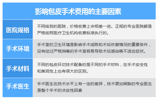 1、术前检查费:术前结合患者的症状、体质、病史等情况做一个基本的检查,只需几十元;个别患者可能需要适当增加一些检查项目(比如龟头炎,疱疹,湿疣等),费用均在百元左右。