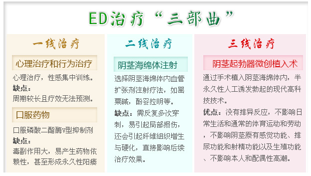 阴茎勃起是在有性冲动时,在神经内分泌调节下阴海绵体内动脉血液灌注量急剧增加,而阻断静脉回流使阴茎海绵体内血液充盈而有到勃起完成满意的性生活。对于重度勃起障碍患者,常规口服药物疗法、阴茎海绵体药物注射疗法,真空负压装置疗法等均无显著效果。这种患者长需要阴茎起勃器得以治疗。阴茎起勃器为治疗ED的第三线治疗方法,也是临床公认成功率最高的方法。由权威专家在线为您解答相关疾病问题,根据病情给予专业的个性化的指导意见,提供专业治疗方案,并为您的病情保密。
